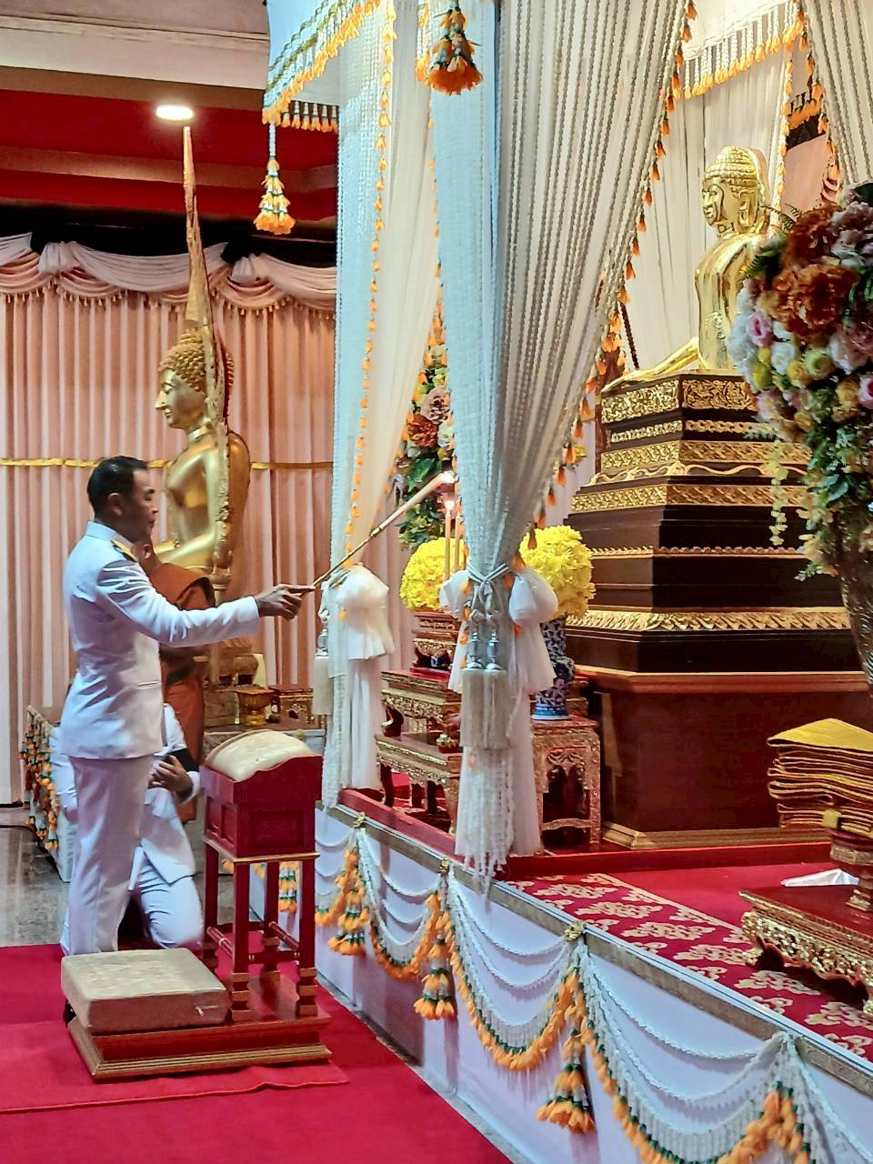 พิธีเจริญพระพุทธมนต์เเละทำบุญตักบาตรถวายพระราชกุศล...