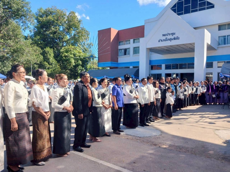 พิธีเจริญพระพุทธมนต์เเละทำบุญตักบาตรถวายพระราชกุศล ณ. วัดกลางโกสุมเเละวางพานพุ่มดอกไม้ถวายบังคม ณ หอประชุมอำเภอโกสุมพิสัย เนื่องในวันชาติเเละวันพ่อเเห่งชาติ