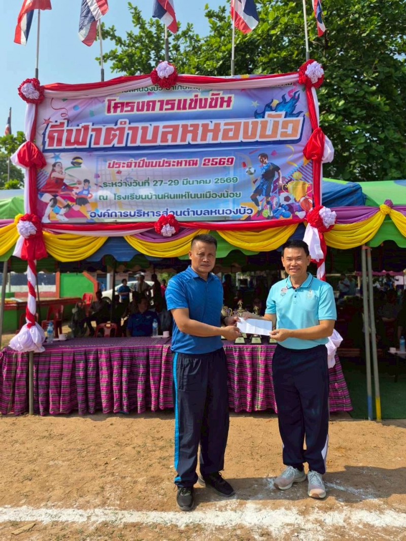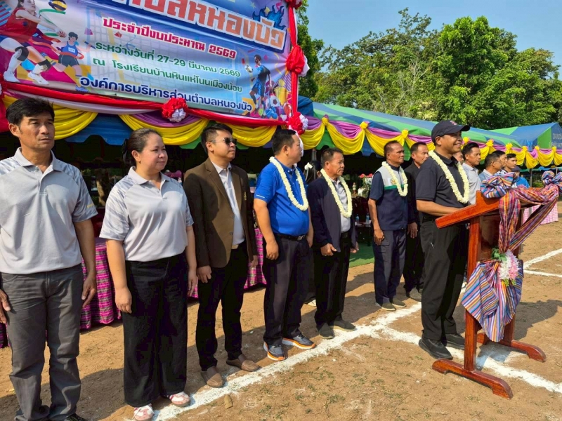 เข้าร่วมพิธีเปิดโครงการแข่งขันกีฬาตำบลหนองบัว ประจำปีงบประมาน 2569 ณ สนามโรงเรียนบ้านหินแห่โนนเมืองน้อย ซึ่งมีนายฉลอง พึ่งโคกสูง นายอำเภอโกสุมพิสัย เป็นประธานในงานพิธีเปิดครั้งนี้