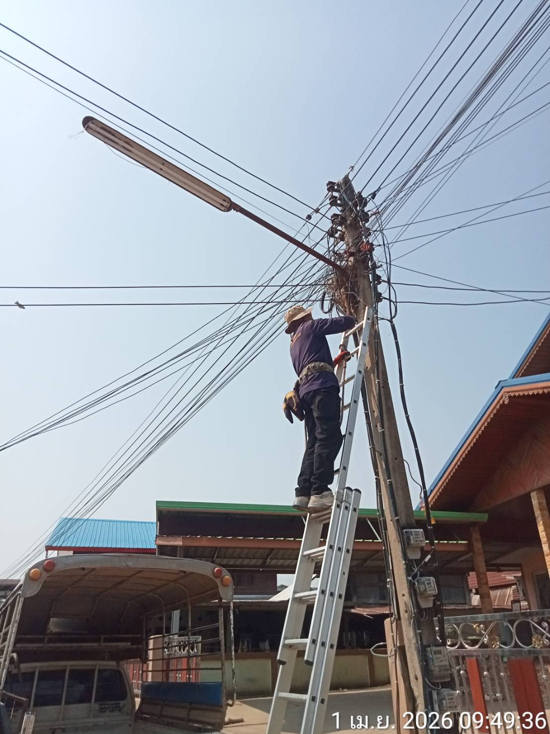 วันพุธที่ 1 เมษายน พ.ศ. 2569 เวลา 10.00 น.องค์การบริหารส่วนตำบลหนองบัวได้มอบหมายให้ทางกองช่างออกซ่อมเเซมไฟฟ้าสาธารณะ ณ บ้านคุยเเพง ม.4 จำนวน 1 จุด