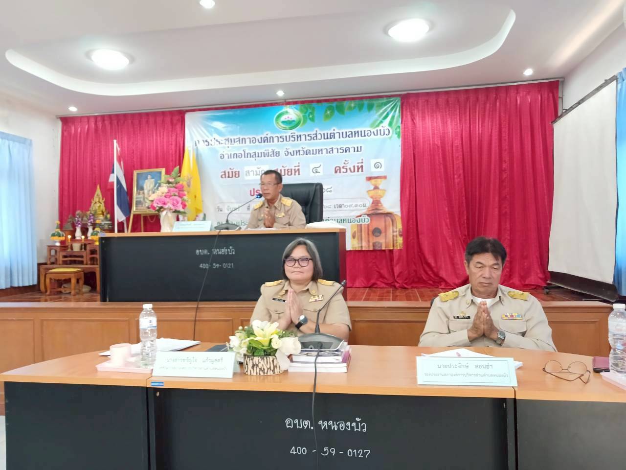 วันจันทร์ที่ 10 พฤศจิกายน พ.ศ. 2568 เวลา 09.00 น. นายนพกร สีนูเดช นายก อบต.หนองบัว คณะผู้บริหาร สมาชิกสภา อบต.ฯ ปลัด อบต.ฯ รองปลัด อบต.ฯ หัวหน้าส่วนราชการ และเจ้าหน้าที่ อบต.หนองบัว เข้าร่วมการประชุมสภาสมัยสามัญ สมัยที่ 4 ครั้งที่ 1/2568