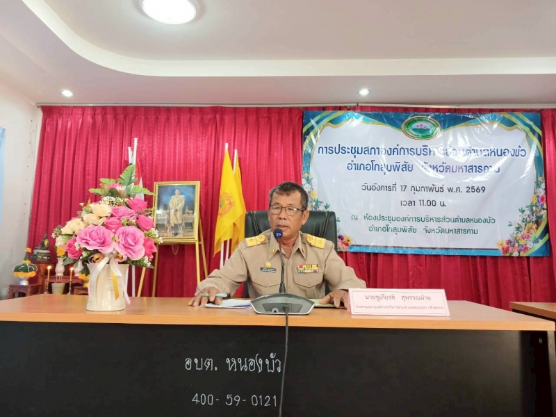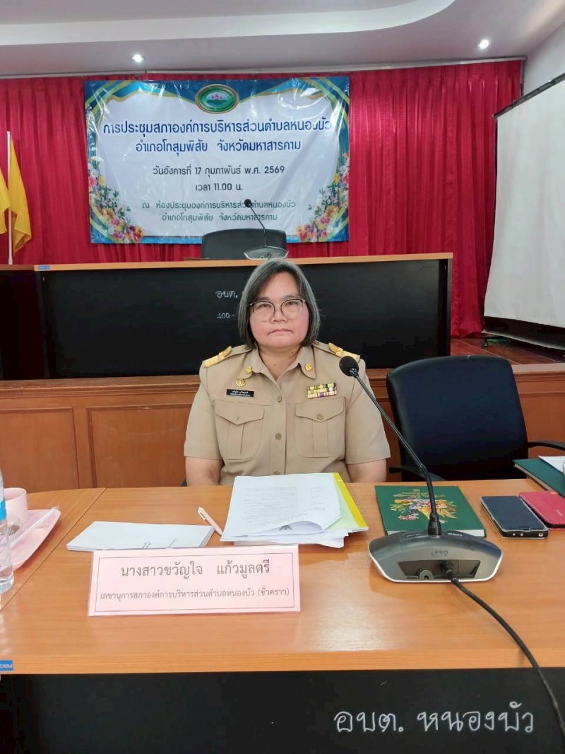(อังคารที่ 17 กุมภาพันธ์ 2569 เวลา 11.00 น.) ณ ห้องประชุมสภาองค์การบริหารส่วนตำบลหนองบัว โดยมี นายฉลอง พึ่งโคกสูง นายอำเภอโกสุมพิสัย เเละนางรุ่งฤทัย สนสุนันท์ ท้องถิ่นอำเภอโกสุมพิสัย เข้าร่วมประชุมฯ ในครั้งนี้ด้วย
