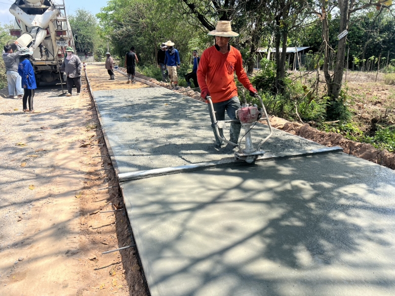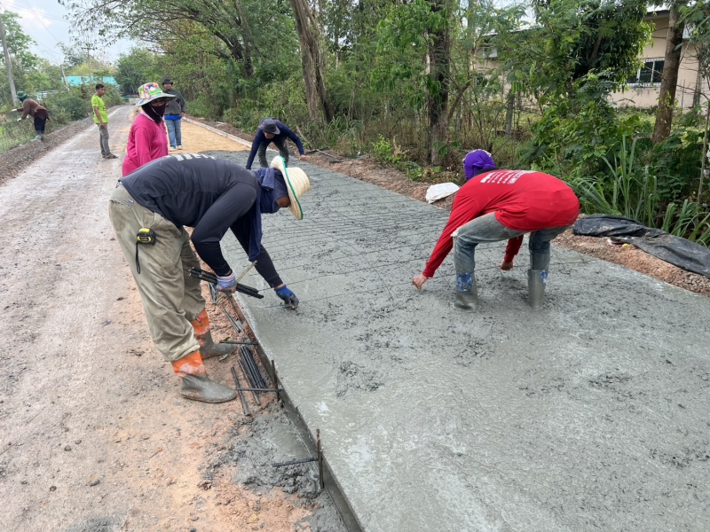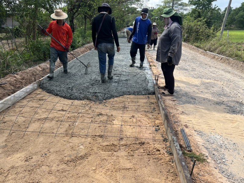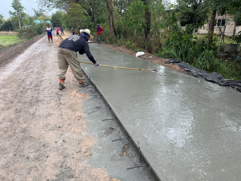 โครงการซ่อมสร้างถนนคอนกรีตเสริมเหล็ก สายทางจากแยกถนนทางหลวง 2391 ถึงบ้านเมืองเพ็ง ผู้รับจ้างทำการเทผิวจราจรคอนกรีตขนาดกว้าง 2.50 เมตรยาว 150 เมตร