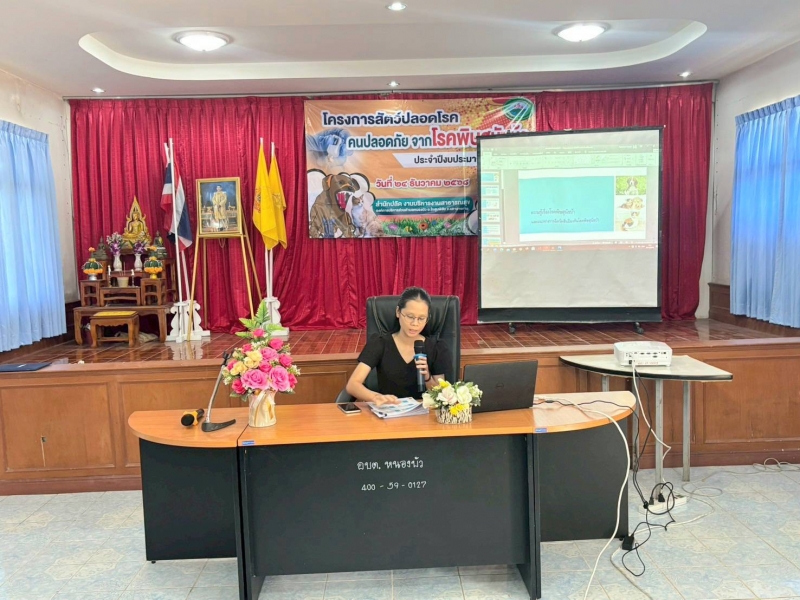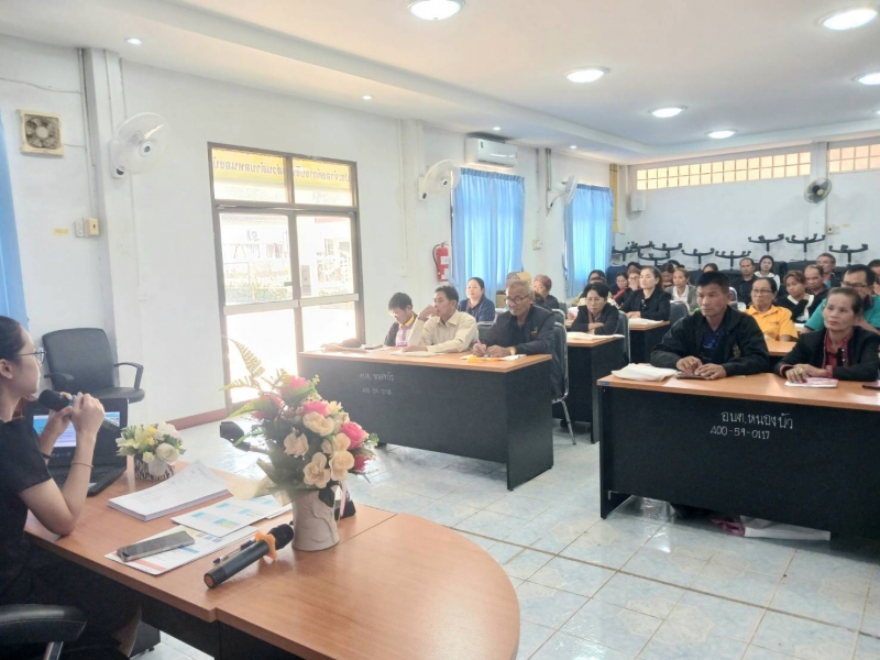วันพุธที่ 24 ธันวาคม พ.ศ 2568 เวลา 09.00 น.นางสาวขวัญใจ เเก้วมูลตรีปลัดองค์การบริหารส่วนตำบลหนองบัว ปฏิบัติหน้าที่นายกองค์การบริหารส่วนตำบลหนองบัว/รองปลัด อบต.ฯ/หัวหน้าส่วนราชการทุกกอง/เจ้าหน้าที่ อบต.หนองบัว/ผู้นำชุมชน/ประชาชนทั่วไป ได้เข้าร่วมอบรมตามโครงการอบรมสัตว์ปลอดโรค คนปลอดภัยจากโรคพิษสุนัขบ้า ประจำปีงบประมาณ พ.ศ 2569 ณ ห้องประชุมองค์การบริหารส่วนตำบลหนองบัว โดยมีกิจกรรมอบรมให้ความรู้เกี่ยวกับการป้องกันโรคพิษสุนัขบ้า ให้เเก่กลุ่มเป้าหมาย คือ ผู้นำชุมชน อาสาสมัครสาธารณะสุขประจำหมู่บ้าน (อสม.) เเละอาสาปศุสัตว์ตำบลหนองบัว จำนวน 40 คน