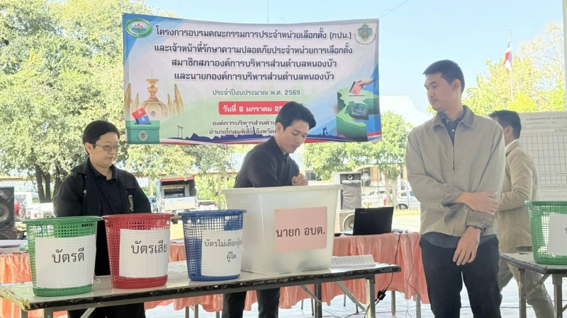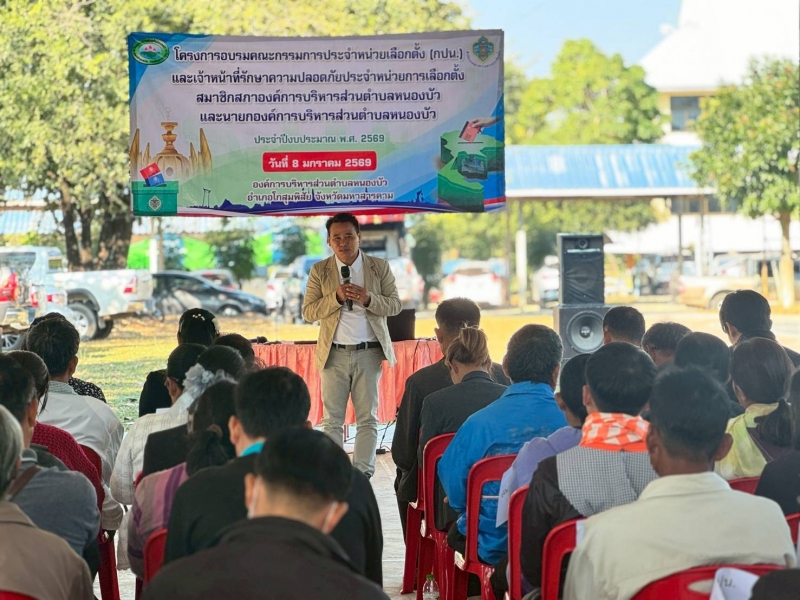 วันพฤหัสบดี ที่ 8 มกราคม พ.ศ.2569 เวลา 09.00 น. น.ส ขวัญใจ เเก้วมูลตรี. ปลัด อบต.ฯ ปฏิบัติหน้าที่(นายก อบต.หนองบัว) / รองปลัด อบต. /หัวหน้าส่วนราชการ/เจ้าหน้าที่ อบต.หนองบัวเเละคณะกรรมการประจำหน่วยเลือกตั้ง (กปน) ฯ เข้าร่วมอบรมตามโครงการอบรมคณะกรรมการประจำหน่วยเลือกตั้ง (กปน) เเละเจ้าหน้าที่รักษาความปลอดภัยประจำหน่วยเลือกตั้งสมาชิกสภาองค์การบริหารส่วนตำบลหนองบัวเเละนายกองค์การบริหารส่วนตำบลหนองบัว ณ อาคารเอนกประสงค์องค์การบริหารส่วนตำบลหนองบัว อ.โกสุมพิสัย จ.มหาสารคาม