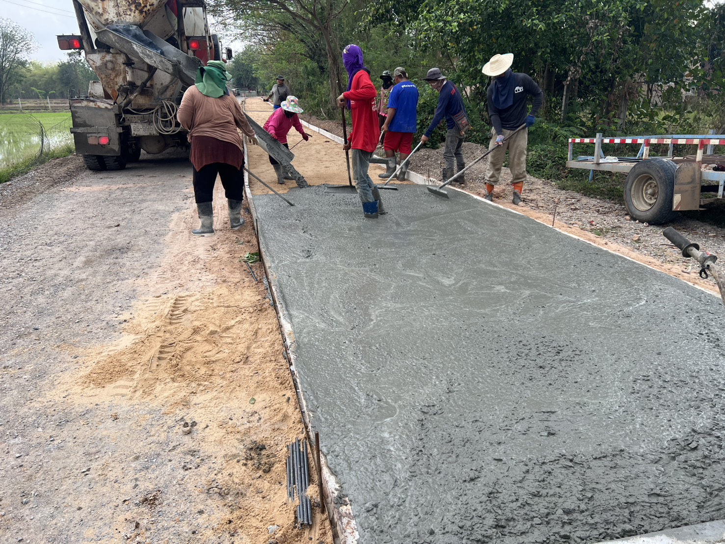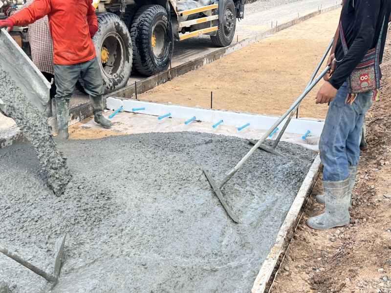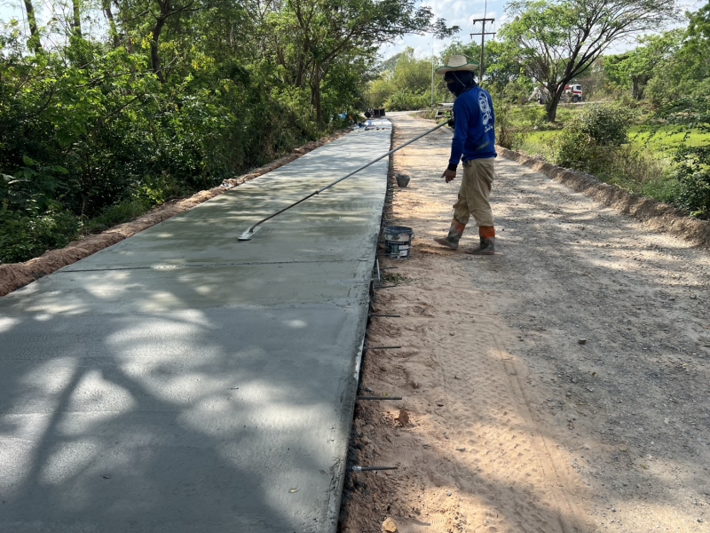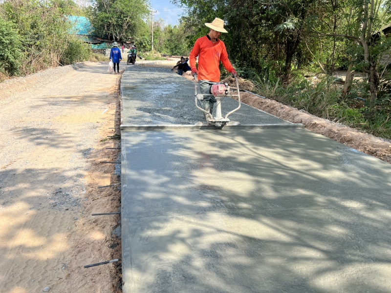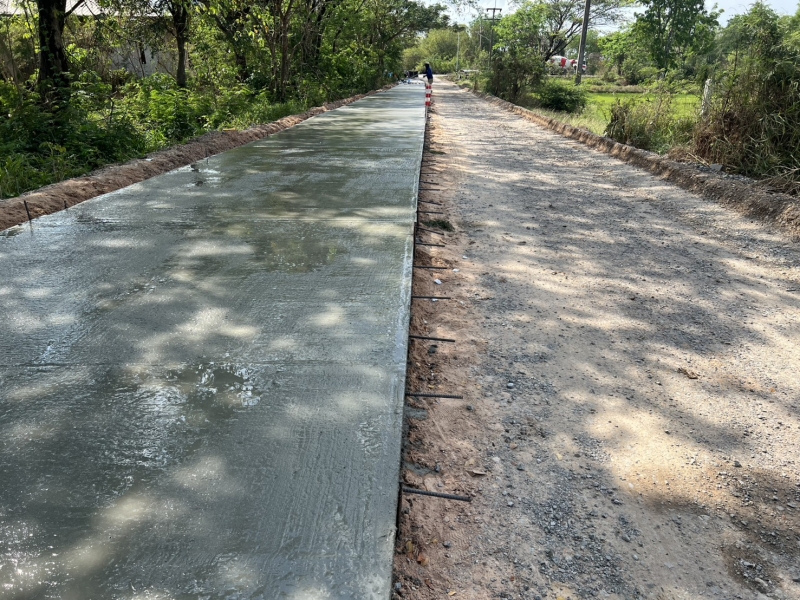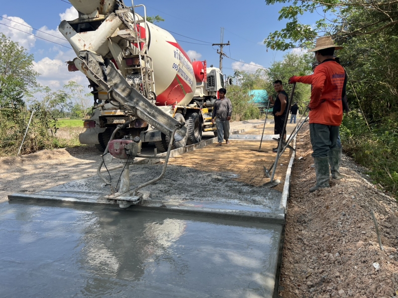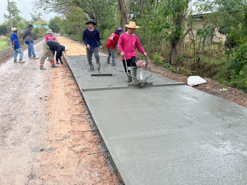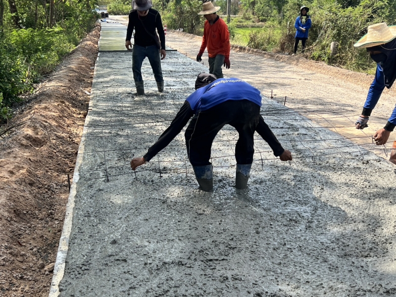 โครงการซ่อมสร้างถนนคอนกรีตเสริมเหล็ก สายทางจากแยกถนนทางหลวง 2391 ถึงบ้านเมืองเพ็ง ผู้รับจ้างทำการเทผิวจราจรคอนกรีตขนาดกว้าง 2.50 เมตรยาว 150 เมตร